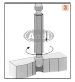 7、 取鋼絲螺套:在安裝過(guò)程中出現(xiàn)問(wèn)題或者由于鋼絲螺套使用時(shí)間過(guò)久需要取出絲套,應(yīng)當(dāng)使用帶有刃的卸套工具對(duì)準(zhǔn)螺套端口,用榔頭猛打一下,用手加力按下手柄反螺紋旋轉(zhuǎn)即可退出鋼絲螺套。